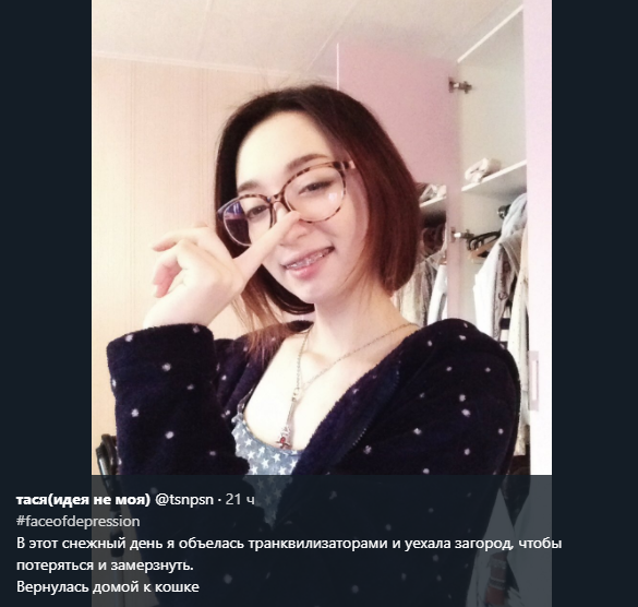 После этого сеть наводнили посты людей, столкнувшихся с похожими обстоятельствами. Под хэштегами #faceofdepression, #лицодепрессии пользователи выкладывают фото и видео, сделанные во время тяжелой депрессии, накануне попыток самоубийства, фотографии друзей и родных, которые вскоре после съемки покончили с собой.