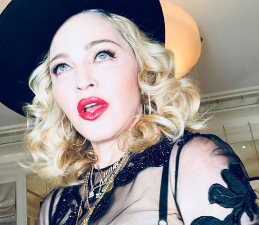 На днях звезда, мягко говоря, удивила фолловеров странным снимком в соцсети. На нем Мадонна запечатлена с голой грудью, которая закрашена черным крестом. В руках певица держит сумку.