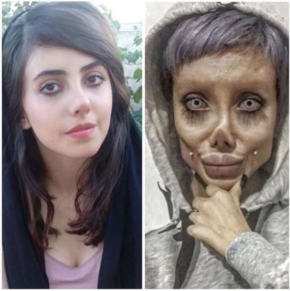 Жительница Ирана Сахар Табар, прославившаяся в сети как самая ужасная копия актрисы Анджелины Джоли, в жизни оказалась довольно красивой девушкой.