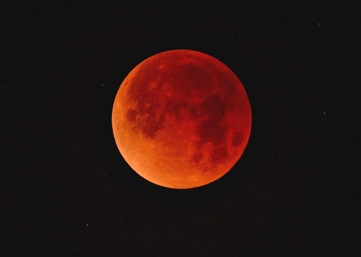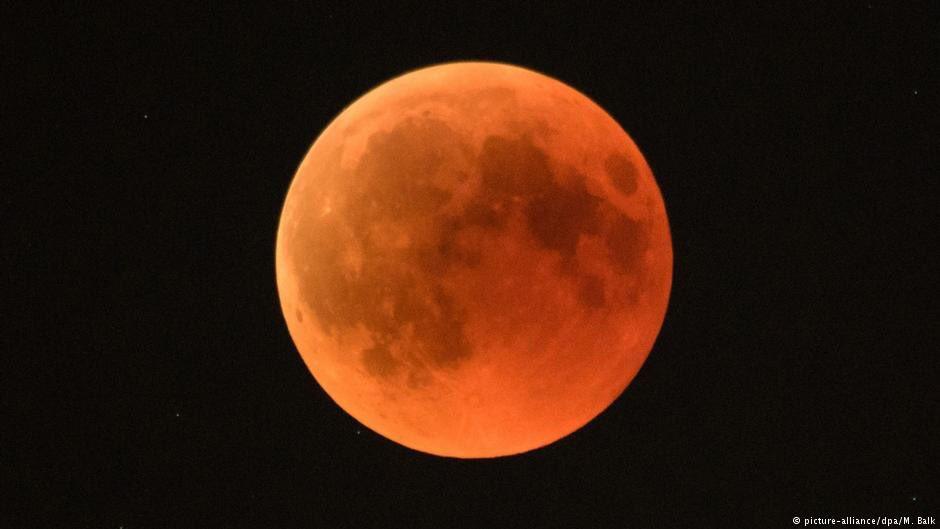 Во время затмения Луна стала кроваво-красной из-за преломления солнечного света, проходящего сквозь атмосферу Земли, передает Час Пик.