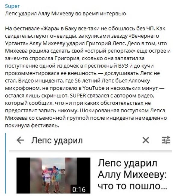 На фестивале "Жара" в Баку певец Григорий Лепс ударил микрофоном журналистку Аллу Михееву.