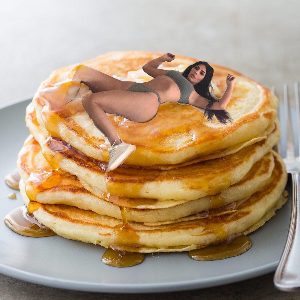 Кардашьян подписала снимок: "Like butter", что в данном контексте, очевидно, переводится как "Люблю Butter", но возможен и другой перевод фразы - "Как масло". Именно второй вариант больше пришелся по нраву интернет-шутникам, которые тут же прифотошопили "масляную" Ким на стопку блинчиков.