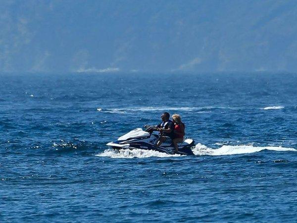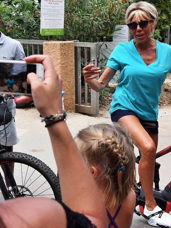Президентская чета предпочитает активный отдых: так, недавно их засняли катающимися на водном скутере, а позже журналисты буквально "атаковали" Брижит, которая отправилась на велопрогулку в коротких шортах.