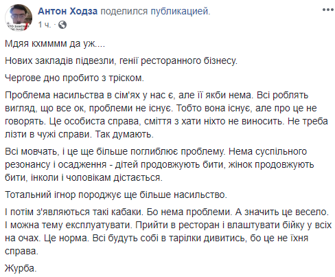 "Дать пощечину, дернуть за одежду, вылить чай в лицо, дать пинка - это все можно сделать у нас и не ждать окончания ужина", - говорится на странице заведения в Фейсбуке.