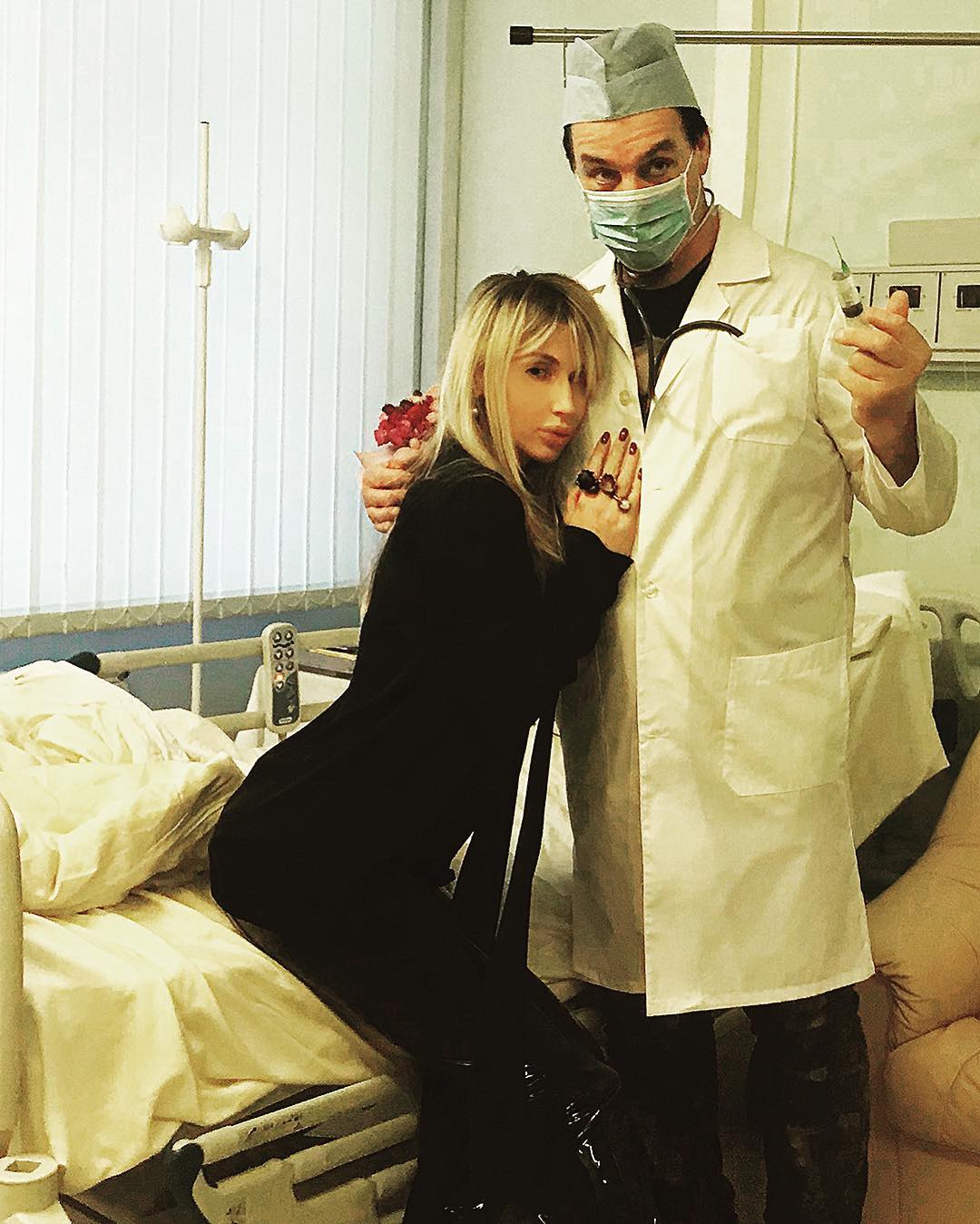 Певица выложила у себя в Instagram занятное фото, сделанное в больничной палате. На снимке Лобода нежно прижимается к Тиллю, который одет в медицинский халат.