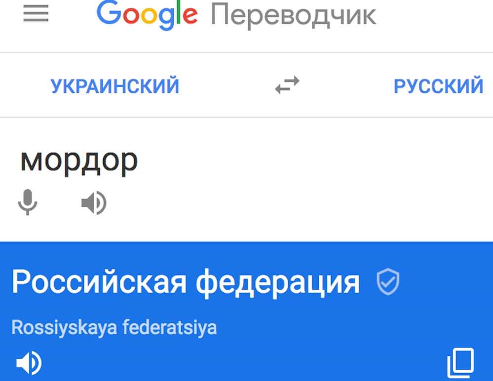 Один из пользователей Твиттера заметил, что в переводчике Google слово "мордор" переводится с украинского языка как "Российская федерация". При этом сервис определяет язык оригинала как монгольский.