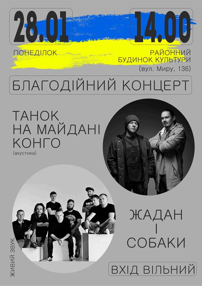 Украинские музыкальные коллективы "Танок на майдані Конго" и "Жадан и Собаки" дадут благотворительные концерты на Донбассе.