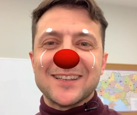 Зеленский записал видео, на которое наложена "маска" клоуна, и призвал своих сторонников присоединиться к флешмобу, передает Час Пик.