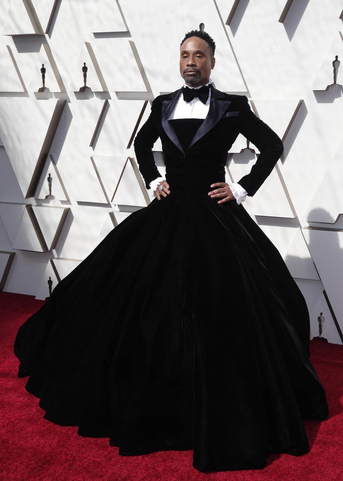 Портер вышел на красную дорожку в длинном пышном черном платье. Верх наряда представлял собой короткий пиджак с бабочкой, передает Час Пик.
