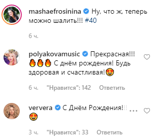 В комментариях Марию поздравили с днем рождения многочисленные поклонники и украинские звезды. Так, с поздравлениями отметились Оля Полякова, Наталья Могилевская, Вера Брежнева.