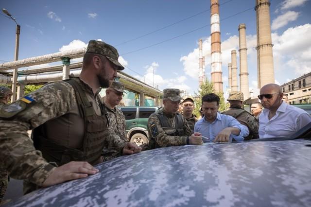 Президент Украины Владимир Зеленский совершил первую рабочую поездку в Луганскую область, где произвел осмотр передовых позиций военных Вооруженных сил Украины в Счастье и Станице Луганской.