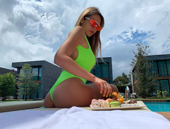 На нем она позировала в откровенном купальнике неоново-зеленого цвета, продемонстрировав свою "пятую точку".