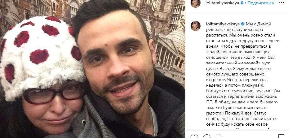 Российская певица Лолита Милявская рассталась с мужем теннисистом Дмитрием Ивановым после девяти лет семейной жизни.