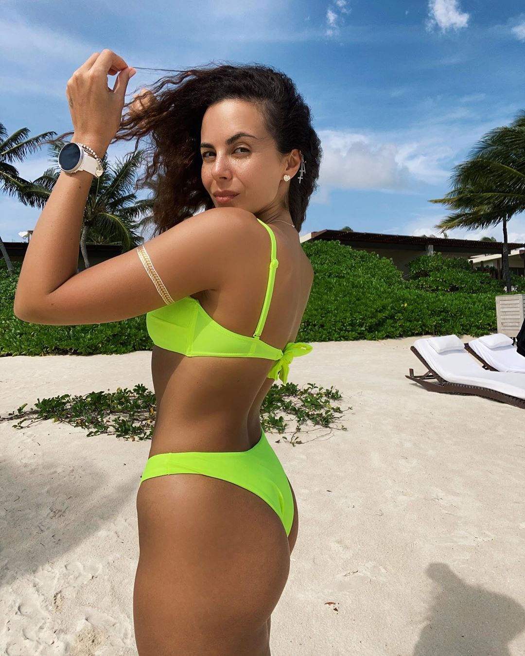 Каменских выложила в Instagram свежие фотографии в салатовом купальнике, который выгодно подчеркнул ее загар.