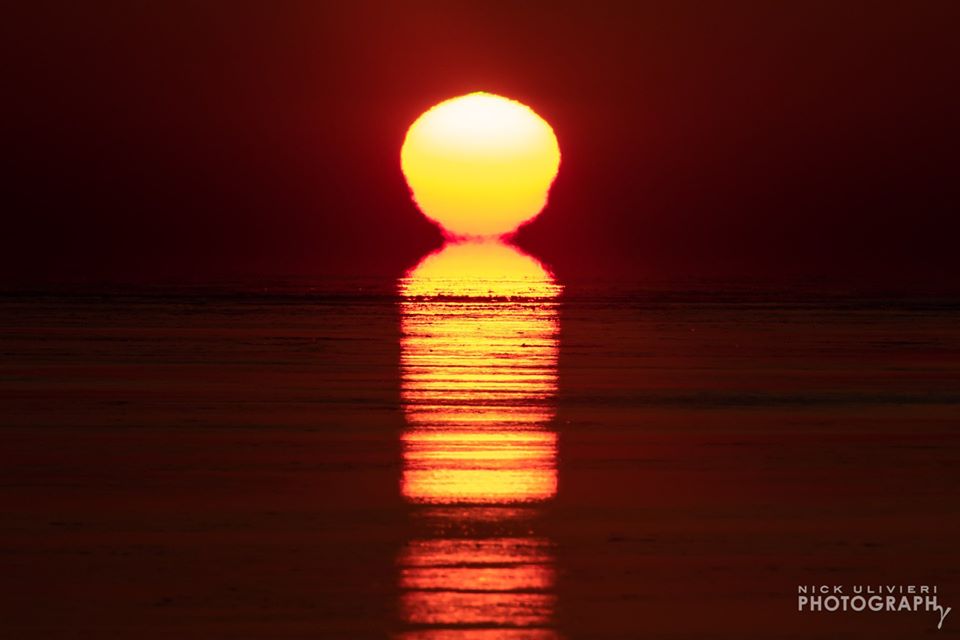 В США над озером Мичиган фотограф Ник Уливьери смог запечатлеть удивительное явление: кажется, что над водой одно за другим восходят сразу два Солнца.