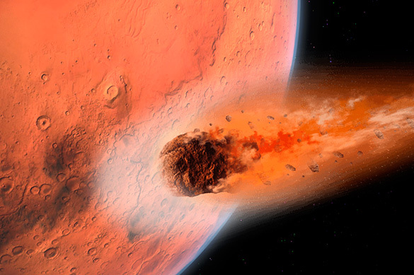 Сенсационный снимок на днях обнародовало агентство NASA: крупное небесное тело упало на поверхность Красной планеты и заставило ее изменить цвет.