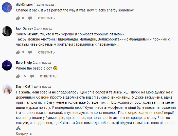 Отметим, что помимо украинцев, негативно о новой композиции высказались также многие иностранные комментаторы.