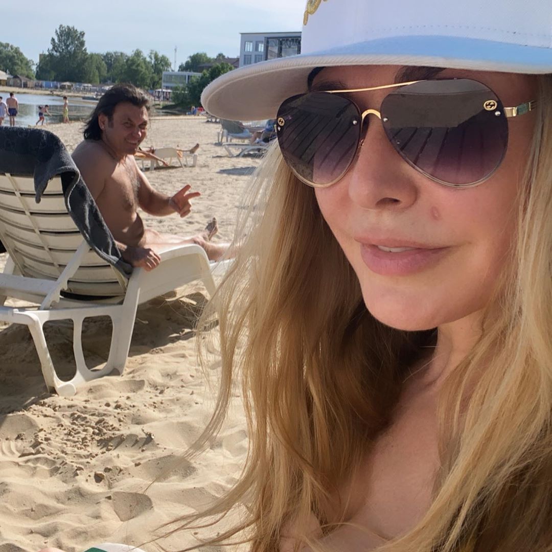 Актриса выложила снимки с пляжа на Голубом озере в селе Подгорцы Киевской области, где она отдыхала с мужем Виталием Борисюком.