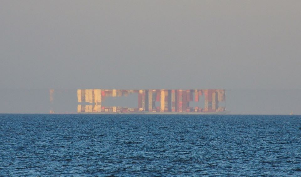 Над Атлантическим океаном недалеко от Нью-Йорка был замечен необычный мираж, перевернутый вверх ногами.