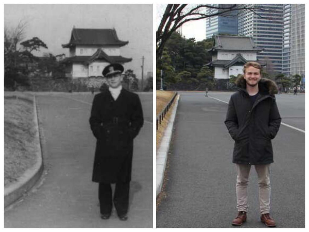Парень нашел в Токио место, на котором его дедушка сфотографировался 73 года назад, и повторил кадр. Необычная фотография тут же обрела популярность в сети.