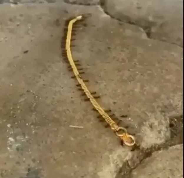 В сети появилось видео, на котором муравьи тащат предмет, в несколько раз превышающий их собственный вес - золотую цепочку, чем демонстрируют слаженную командную работу.
