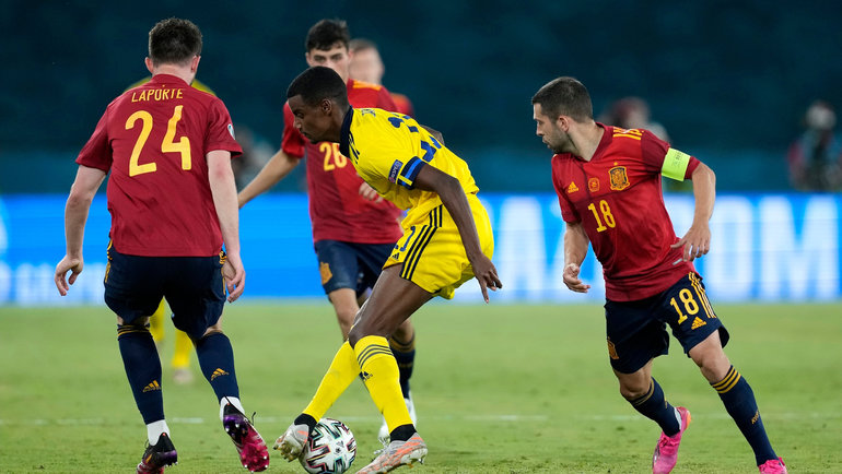 С начала матча Испания доминировала, а Швейцария сосредоточилась на том, чтобы не пропустить гол. Однако уже на 8-й минуте Жорди Альба пробил после розыгрыша углового из-за пределов штрафной. Мяч удачно попал в ногу Дениса Закарии и отлетел в ворота, а Ян Зоммер уже не реагировал на полет мяча после рикошета.