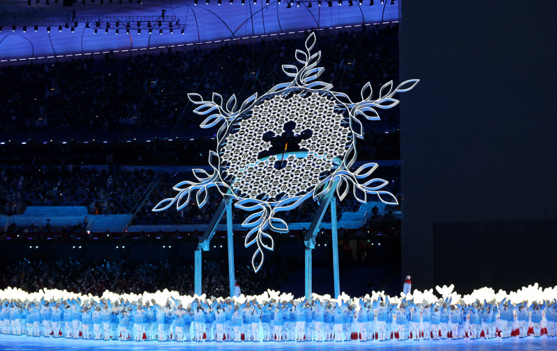 В 2022 году олимпийский огонь зажгли необычно. Вместо традиционной чаши использовали факел, который поместили в центр композиции со снежинкой, составленной из названий стран-участниц зимней Олимпиады.